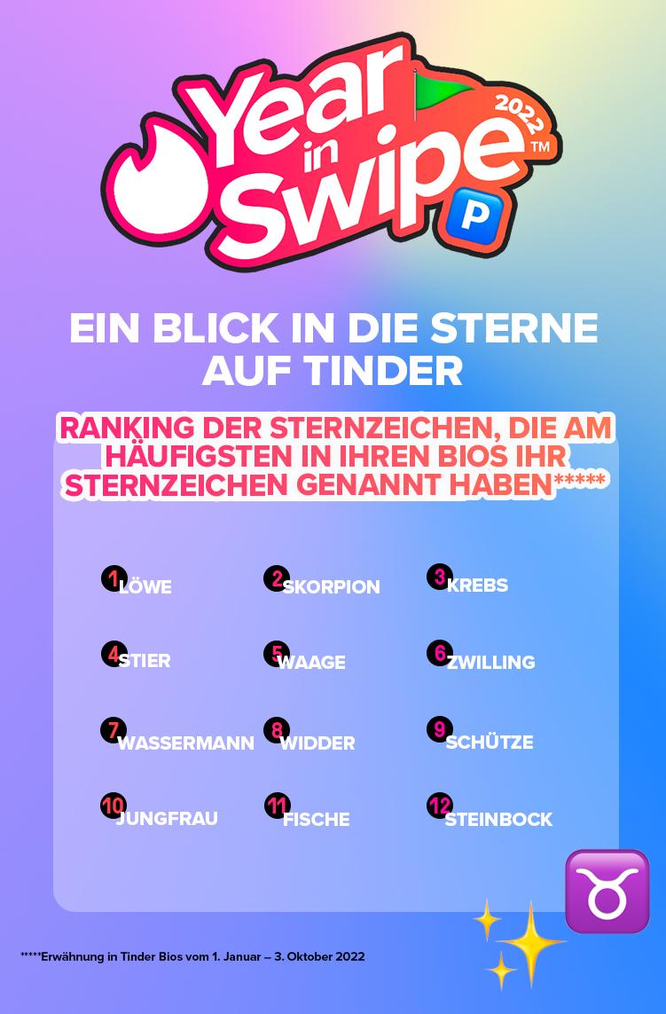 Das Interesse an Astrologie ist bei den Tinder-Nutzer*innen dieses Jahr ebenfalls gestiegen: Löwen, Skorpione und Krebse setzten den Trend und gaben am häufigsten ihr Sternzeichen an.