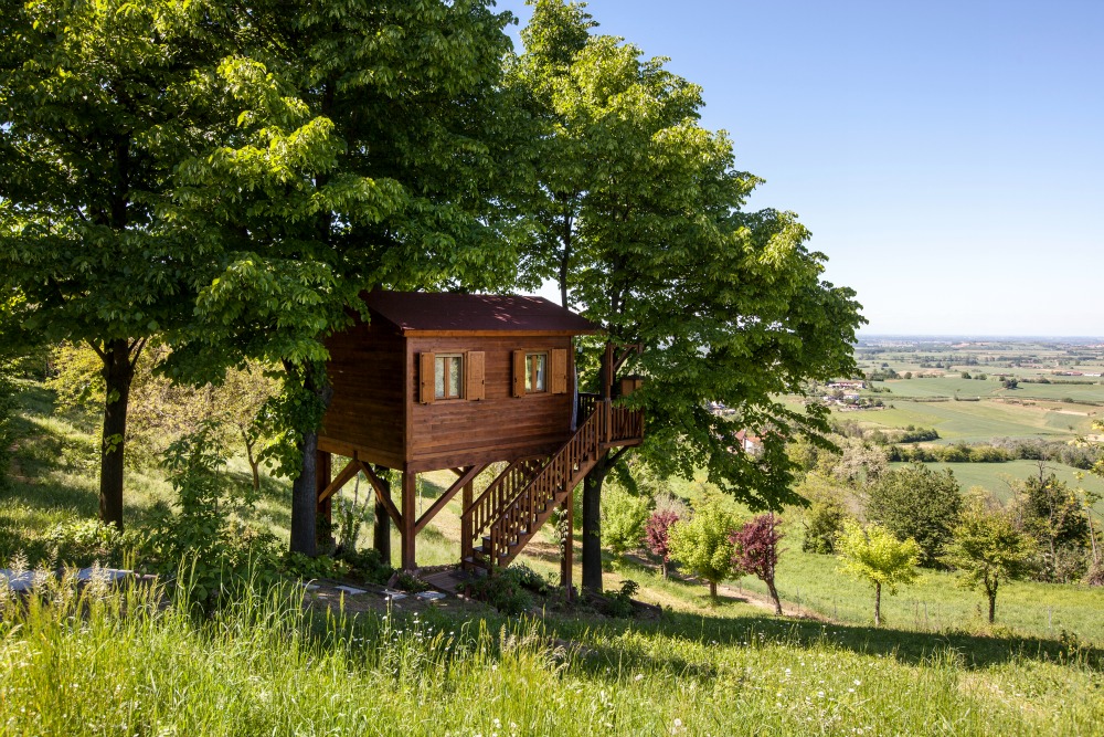 - Dieses abgeschiedene Häuschen hat einen Panoramablick über die Wälder und Wiesen Italiens, Solarium und Pool im Garten anzubieten. Der Garten misst bescheidene 18.000 Quadratmeter und in dem Weibgebiet, in dem das Baumhaus steht, kann man sich auch noch den ganzen Tag volllaufen lassen. Buon viaggio!