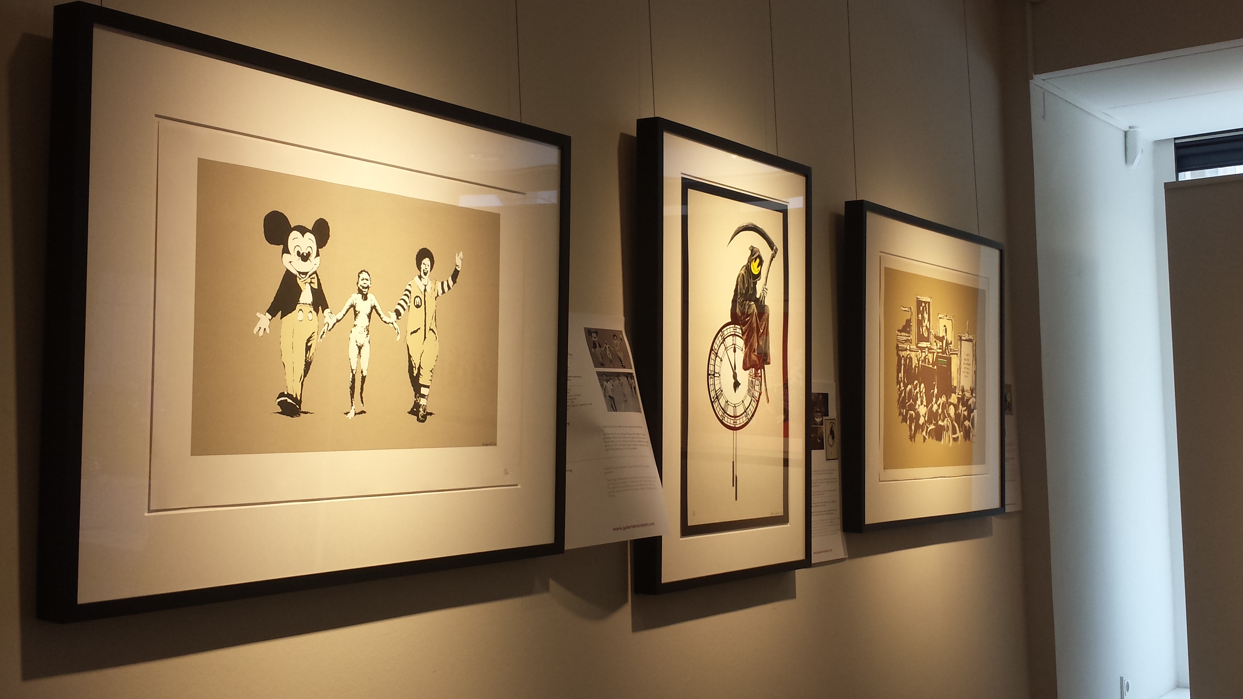 Es handelt sich dabei um eine Privatsammlung der Galerieinhaber Kronsbein. „Mein Vater ist drei Jahre lang in der Weltgeschichte herumgereist und hat die Werke, die hier nun ausgestellt sind, zusammengetragen“, erklärt seine Tochter Sarah Kronsbein im Interview mit ZEITjUNG.de „Das war natürlich sehr schwierig, weil Banksy ja immer noch anonym unterwegs ist. Das Ganze lief dann vor allem über den Sekundärmarkt, also über andere Sammler, die Banksys Ausnahmetalent schon früher erkannt hatten.“