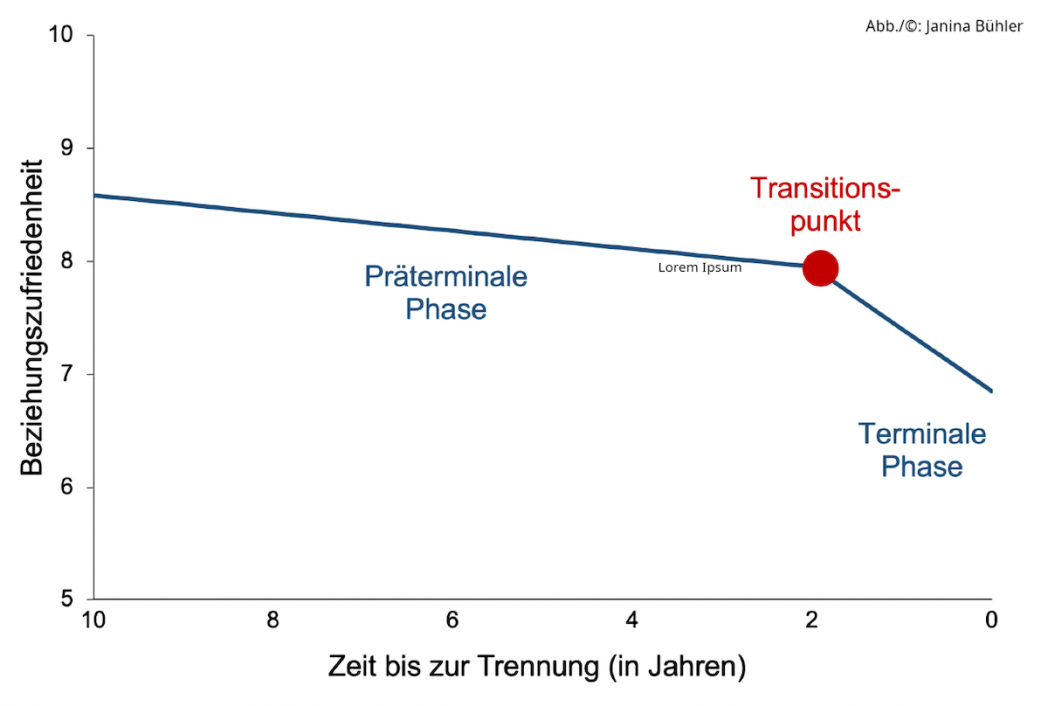 Verlauf der Beziehungszufriedenheit bis zur Trennung. Bild: © Janina Bühler