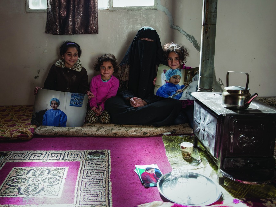 - Mona, Hiba, and their mother: Here, Mona and Hiba sit alongside their mother and younger sister in their home, proudly showing their vision photographs. Girls were given copies of their images and assisted in sharing them with family, friends, and their community, challenging perceptions about the power, vision, and potential of adolescent girls. Girls were also supported in using their photographs to spark conversations with peers and siblings, and led other youths through a process of thinking about and planning for the future.