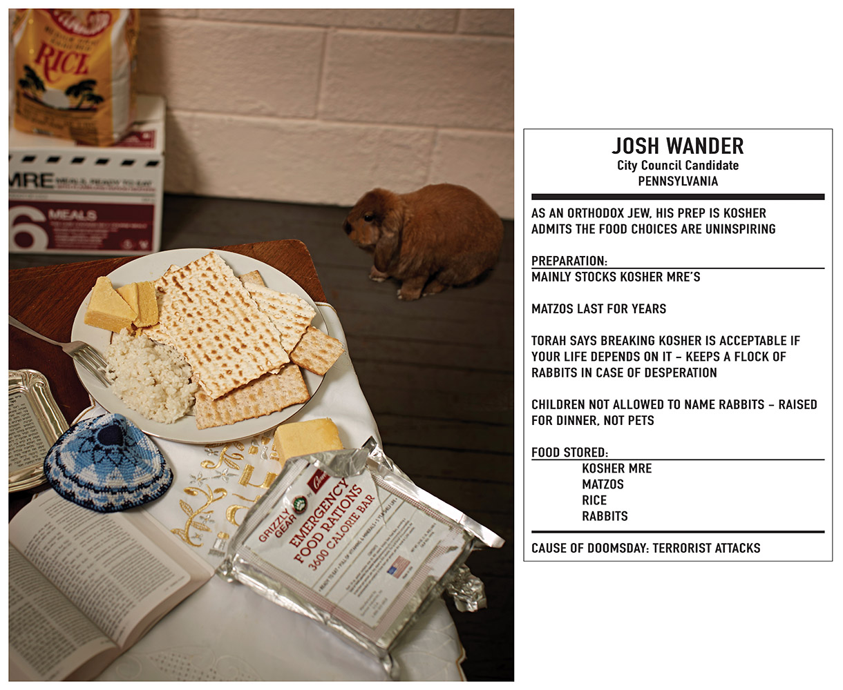 Josh Wander aus Pennsylvania bewirbt sich für den Stadtrat. Er ist orthodoxer Jude und isst ausschließlich kosher. Sein Matzenbrot reicht für mehrere Jahre aus und er hält Kaninchen, um sie zu essen. Josh bereitet sich so auf mögliche Terroranschläge vor.